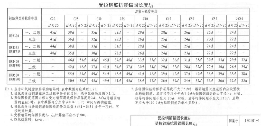 对于抗震区的结构,现行混凝土规范对纵向受拉钢筋的锚固长度要求,不仅要满足非抗震条件下的要求,同时纵向受拉钢筋的抗震锚固长度要考虑抗震等级的影响,按照纵向受拉钢筋的锚固长度乘以纵向受拉钢筋抗震锚固长度修正系数。