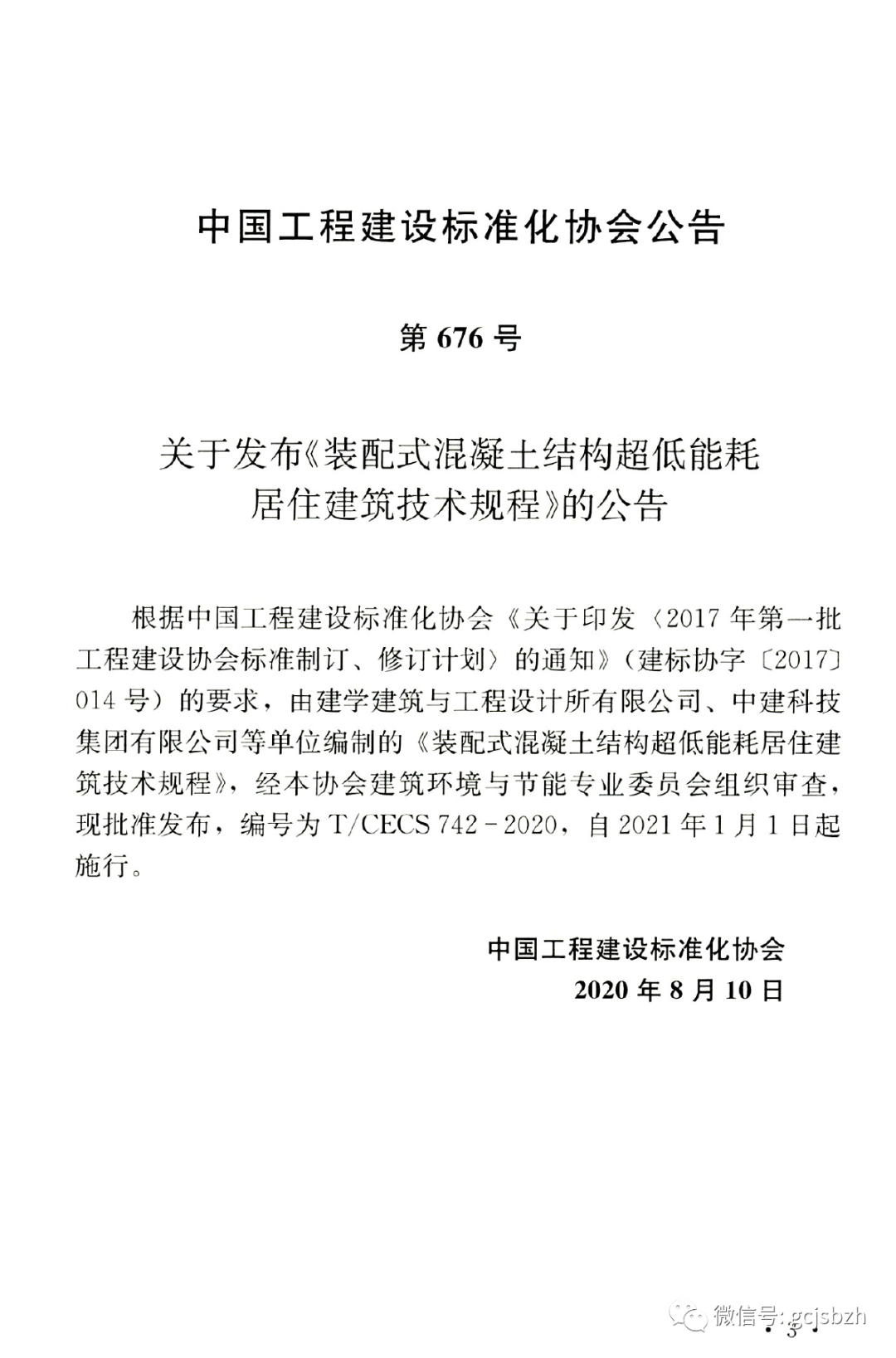 《装配式混凝土结构超低能耗居住建筑技术规程》(T/CECS742-2020)