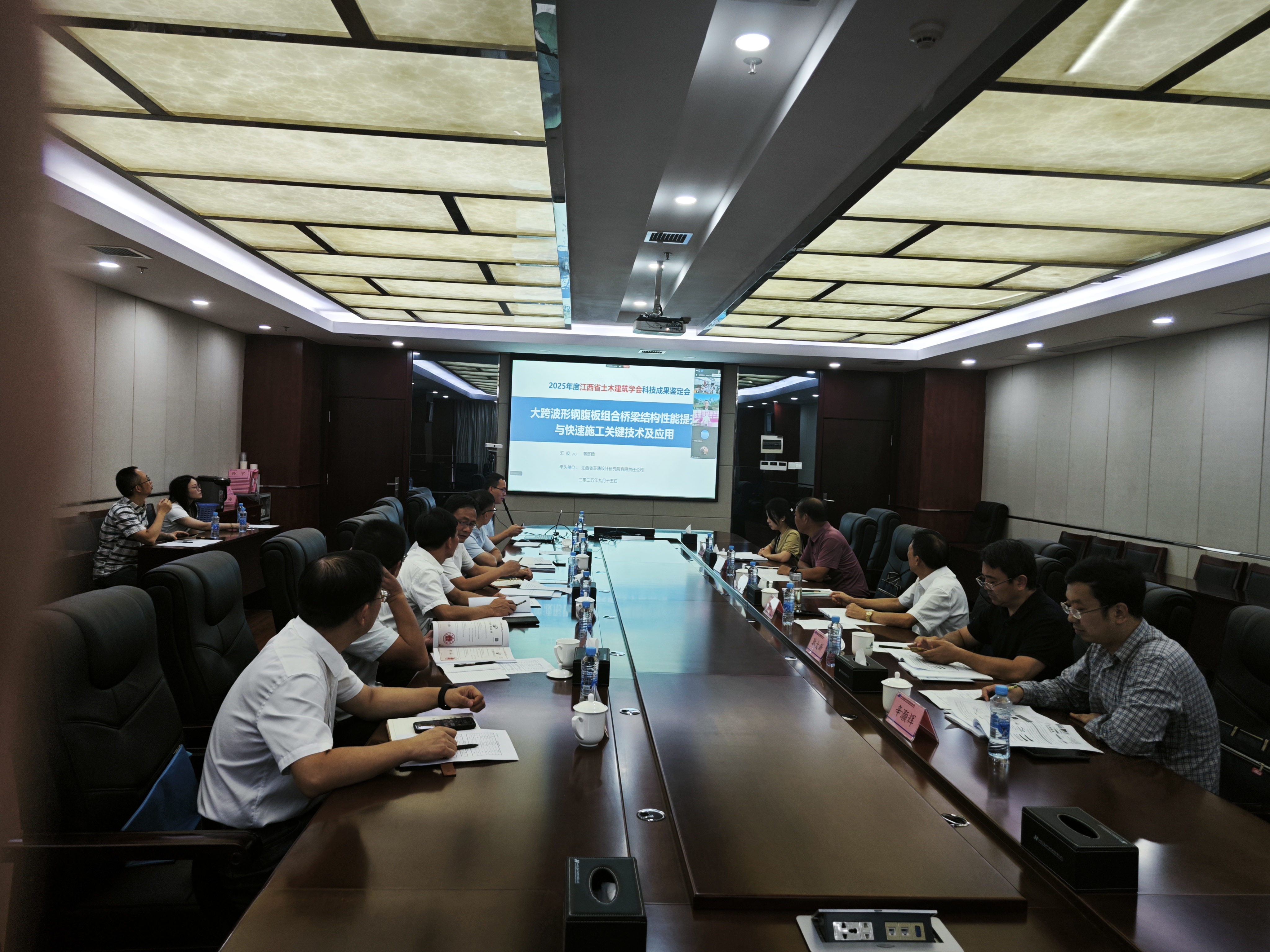 近日,江西省土木建筑学会组织召开了由江西省交通设计研究院有限责任公司、江西省交通投资集团有限责任公司、长沙理工大学等单位共同完成的《大跨波形钢腹板组合桥梁结构性能提升与快速施工关键技术及应用》科技成果评价会,会议由学会副秘书长姜颖主持。
