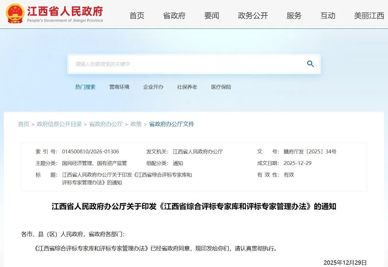江西省综合评标专家库和评标专家管理办法